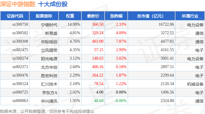 证券之星消息,10月20日,深证中游(399705)指数报收于3981.94点,涨1.8%,成交2728.76亿元,换手率1.9%。当日该指数成份股中,上涨的有104家,中际旭创以7.87%的涨幅领涨,下跌的有43家,金风科技以2.68%的跌幅领跌。