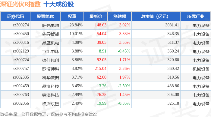 资金流向方面,深证光伏R(470035)指数成份股当日主力资金净流出合计2.93亿元,游资资金净流出合计5438.09万元,散户资金净流入合计3.47亿元。成份股资金流向详情见下表: