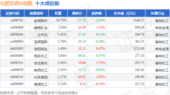 资金流向方面,化肥农药R(480035)指数成份股当日主力资金净流入合计4.73亿元,游资资金净流入合计2922.72万元,散户资金净流出合计5.02亿元。成份股资金流向详情见下表: