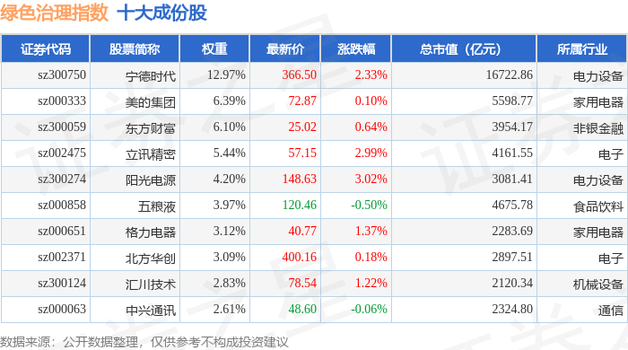 资金流向方面,绿色治理(980058)指数成份股当日主力资金净流出合计7.94亿元,游资资金净流出合计8.24亿元,散户资金净流入合计16.18亿元。成份股资金流向详情见下表: