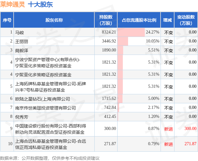 根据莱绅通灵2025年中报公布的十大股东详情如下: