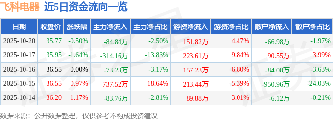10月20日的资金流向数据方面,主力资金净流出84.84万元,占总成交额2.5%,游资资金净流入151.82万元,占总成交额4.47%,散户资金净流出66.98万元,占总成交额1.97%。