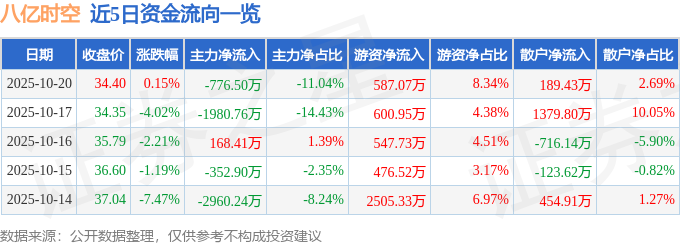 10月20日的资金流向数据方面,主力资金净流出776.5万元,占总成交额11.04%,游资资金净流入587.07万元,占总成交额8.34%,散户资金净流入189.43万元,占总成交额2.69%。