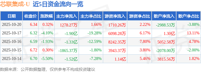 10月20日的资金流向数据方面,主力资金净流入1278.27万元,占总成交额1.66%,游资资金净流入1710.26万元,占总成交额2.22%,散户资金净流出2988.53万元,占总成交额3.88%。