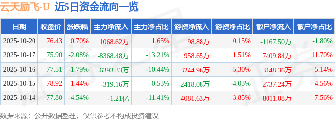 证券之星消息,截至2025年10月20日收盘,云天励飞(688343)报收于76.43元,上涨0.7%,换手率3.18%,成交量8.38万手,成交额6.47亿元。