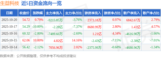 10月20日的资金流向数据方面,主力资金净流出9215.85万元,占总成交额3.76%,游资资金净流入2373.18万元,占总成交额0.97%,散户资金净流入6842.67万元,占总成交额2.79%。