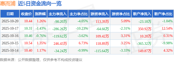 证券之星消息,截至2025年10月20日收盘,惠而浦(600983)报收于10.44元,上涨1.26%,换手率0.28%,成交量2.14万手,成交额2227.75万元。