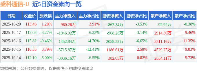 证券之星消息,截至2025年10月20日收盘,盛科通信(688702)报收于113.46元,上涨1.28%,换手率1.06%,成交量2.16万手,成交额2.45亿元。