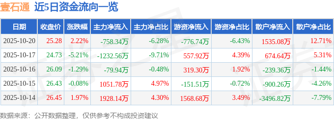 证券之星消息,截至2025年10月20日收盘,壹石通(688733)报收于25.28元,上涨2.22%,换手率2.36%,成交量4.72万手,成交额1.21亿元。