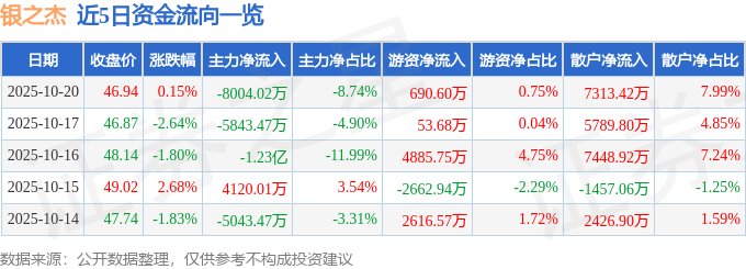 10月20日的资金流向数据方面,主力资金净流出8004.02万元,占总成交额8.74%,游资资金净流入690.6万元,占总成交额0.75%,散户资金净流入7313.42万元,占总成交额7.99%。