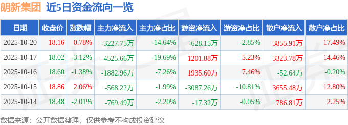 10月20日的资金流向数据方面,主力资金净流出3227.75万元,占总成交额14.64%,游资资金净流出628.15万元,占总成交额2.85%,散户资金净流入3855.91万元,占总成交额17.49%。