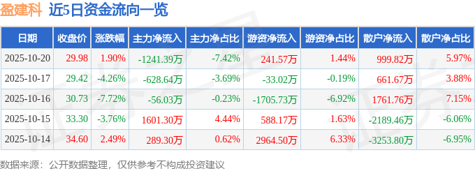 证券之星消息,截至2025年10月20日收盘,盈建科(300935)报收于29.98元,上涨1.9%,换手率9.41%,成交量5.67万手,成交额1.67亿元。