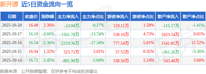 证券之星消息,截至2025年10月20日收盘,新开源(300109)报收于16.48元,上涨2.36%,换手率1.11%,成交量5.01万手,成交额8158.77万元。