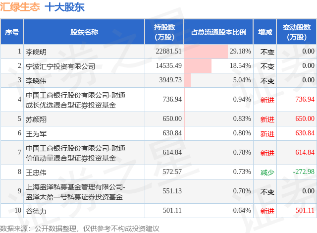 根据汇绿生态2025年中报公布的十大股东详情如下: