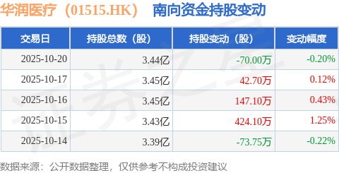 证券之星消息,10月20日南向资金减持70.0万股华润医疗(01515.HK)。近5个交易日中,获南向资金增持的有3天,累计净增持470.15万股。近20个交易日中,获南向资金增持的有16天,累计净增持2176.85万股。截至目前,南向资金持有华润医疗(01515.HK)3.44亿股,占公司已发行普通股的26.56%。