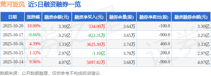 证券之星消息,截至2025年10月20日收盘,黄河旋风(600172)报收于6.38元,上涨10.0%,涨停,换手率17.4%,成交量222.04万手,成交额13.5亿元。