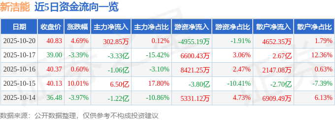 证券之星消息,截至2025年10月20日收盘,新洁能(605111)报收于40.83元,上涨4.69%,换手率15.11%,成交量62.75万手,成交额25.92亿元。