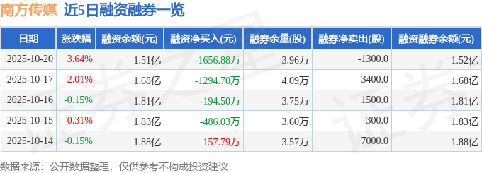 南方传媒融资融券信息显示,融资方面,当日融资买入1759.03万元,融资偿还3415.91万元,融资净偿还1656.88万元。融券方面,融券卖出1600.0股,融券偿还2900.0股,融券余量3.96万股,融券余额54.13万元。融资融券余额1.52亿元。
