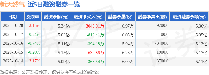 证券之星消息,截至2025年10月20日收盘,新天然气(603393)报收于30.5元,上涨3.15%,换手率3.63%,成交量15.38万手,成交额4.59亿元。