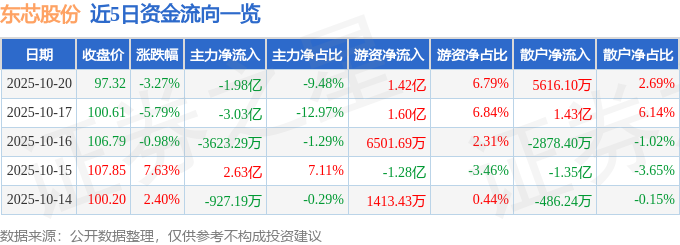 证券之星消息,截至2025年10月20日收盘,东芯股份(688110)报收于97.32元,下跌3.27%,换手率4.8%,成交量21.22万手,成交额20.89亿元。
