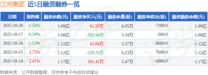 江河集团融资融券信息显示,融资方面,当日融资买入352.98万元,融资偿还291.69万元,融资净买入61.29万元。融券方面,融券卖出7500.0股,融券偿还400.0股,融券余量6.05万股,融券余额45.92万元。融资融券余额1.09亿元。