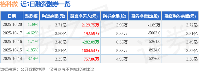 格科微融资融券信息显示,融资方面,当日融资买入4074.0万元,融资偿还1944.24万元,融资净买入2129.75万元。融券方面,融券卖出0.0股,融券偿还1.89万股,融券余量3.96万股,融券余额62.09万元。融资融券余额3.72亿元。