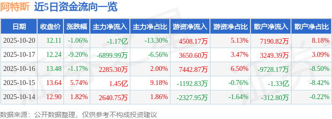 证券之星消息,截至2025年10月20日收盘,阿特斯(688472)报收于12.11元,下跌1.06%,换手率5.15%,成交量71.77万手,成交额8.8亿元。