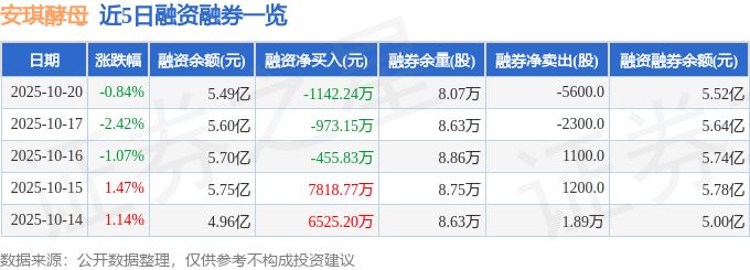 证券之星消息,截至2025年10月20日收盘,安琪酵母(600298)报收于40.35元,下跌0.84%,换手率0.8%,成交量6.84万手,成交额2.77亿元。