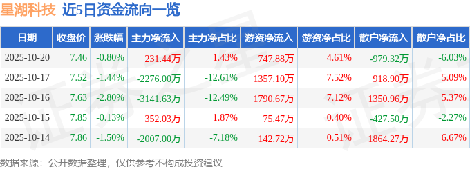 10月20日的资金流向数据方面,主力资金净流入231.44万元,占总成交额1.43%,游资资金净流入747.88万元,占总成交额4.61%,散户资金净流出979.32万元,占总成交额6.03%。