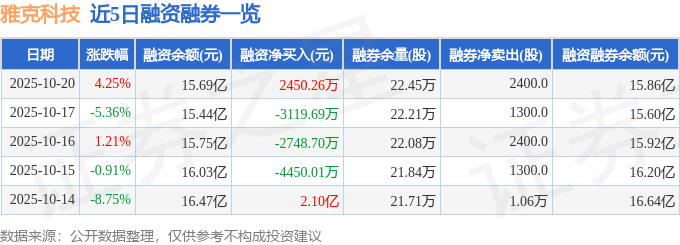 雅克科技融资融券信息显示,融资方面,当日融资买入1.95亿元,融资偿还1.71亿元,融资净买入2450.26万元。融券方面,融券卖出5700.0股,融券偿还3300.0股,融券余量22.45万股,融券余额1702.94万元。融资融券余额15.86亿元。