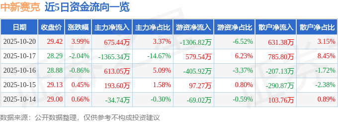 证券之星消息,截至2025年10月20日收盘,中新赛克(002912)报收于29.42元,上涨3.99%,换手率4.22%,成交量6.85万手,成交额2.01亿元。