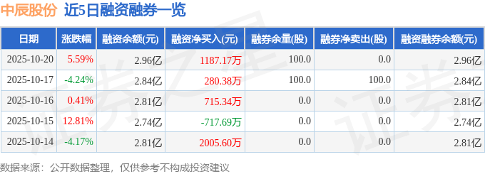 中辰股份融资融券信息显示,融资方面,当日融资买入4226.91万元,融资偿还3039.74万元,融资净买入1187.17万元,连续3日净买入累计2182.89万元。融券方面,融券卖出0.0股,融券偿还0.0股,融券余量100.0股,融券余额0.1万元。融资融券余额2.96亿元。