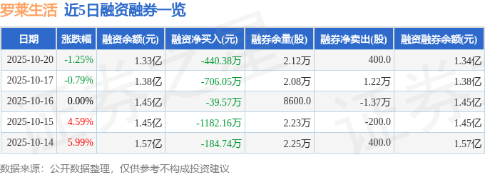 罗莱生活融资融券信息显示,融资方面,当日融资买入665.0万元,融资偿还1105.38万元,融资净偿还440.38万元。融券方面,融券卖出1500.0股,融券偿还1100.0股,融券余量2.12万股,融券余额18.47万元。融资融券余额1.34亿元。