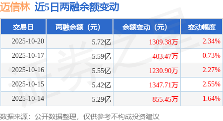 证券之星消息,10月20日,迈信林(688685)融资买入4459.22万元,融资偿还3158.02万元,融资净买入1301.2万元,融资余额5.71亿元,近3个交易日已连续净买入累计2943.71万元。