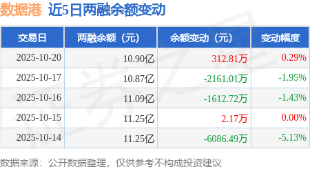 证券之星消息,10月20日,数据港(603881)融资买入7361.22万元,融资偿还7055.05万元,融资净买入306.17万元,融资余额10.86亿元,近20个交易日中有11个交易日出现融资净买入。