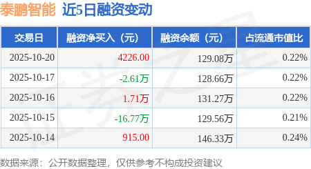 证券之星消息,10月20日,泰鹏智能(920132)融资买入0.64万元,融资偿还0.21万元,融资净买入0.42万元,融资余额129.08万元。