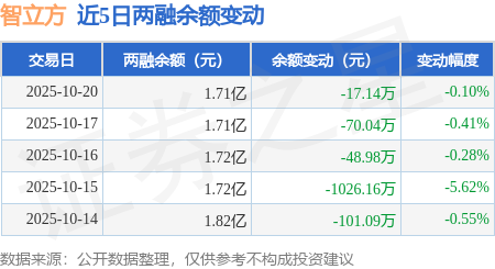 证券之星消息,10月20日,智立方(301312)融资买入598.64万元,融资偿还615.77万元,融资净卖出17.14万元,融资余额1.71亿元。
