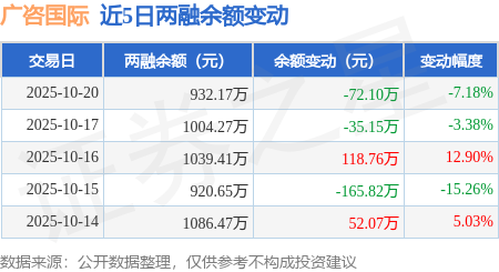 证券之星消息,10月20日,广咨国际(920892)融资买入52.02万元,融资偿还124.12万元,融资净卖出72.1万元,融资余额932.17万元。