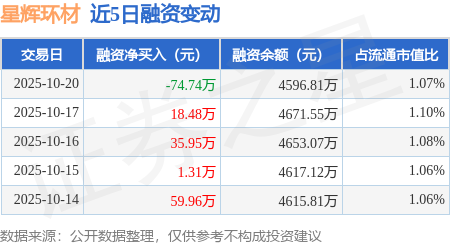 证券之星消息,10月20日,星辉环材(300834)融资买入45.5万元,融资偿还120.24万元,融资净卖出74.74万元,融资余额4596.81万元。