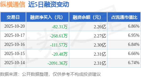 证券之星消息,10月20日,纵横通信(603602)融资买入619.61万元,融资偿还701.92万元,融资净卖出82.31万元,融资余额2.26亿元。