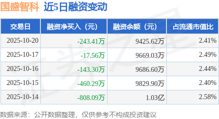 证券之星消息,10月20日,国盛智科(688558)融资买入368.47万元,融资偿还611.88万元,融资净卖出243.41万元,融资余额9425.62万元。