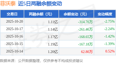 证券之星消息,10月20日,菲沃泰(688371)融资买入242.93万元,融资偿还557.63万元,融资净卖出314.7万元,融资余额1.11亿元。