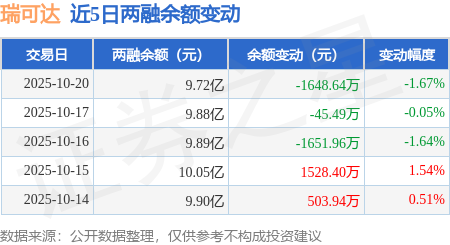 证券之星消息,10月20日,瑞可达(688800)融资买入7779.47万元,融资偿还9427.05万元,融资净卖出1647.58万元,融资余额9.71亿元。