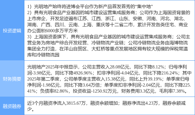 证券之星消息,光明地产10月21日涨停收盘,收盘价4.07元。该股于10点4分涨停,2次打开涨停,截止收盘封单资金为3064.23万元,占其流通市值0.34%。