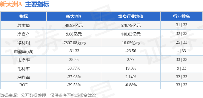 新大洲A2025年中报显示,公司主营收入2.52亿元,同比下降37.68%;归母净利润-7807.08万元,同比下降191.62%;扣非净利润-7032.24万元,同比下降265.93%;其中2025年第二季度,公司单季度主营收入1.63亿元,同比下降17.79%;单季度归母净利润-4466.84万元,同比下降345.3%;单季度扣非净利润-3998.28万元,同比下降663.95%;负债率63.74%,投资收益-484.71万元,财务费用3172.79万元,毛利率30.77%。新大洲A(000571)主营业务:煤炭采掘业务。