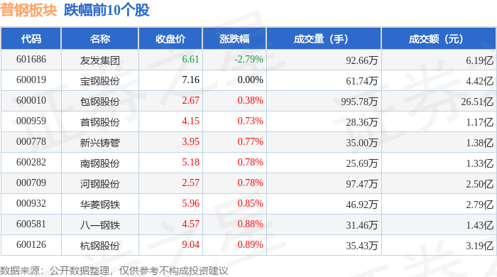 证券之星消息,10月21日普钢板块较上一交易日上涨0.78%,武进不锈领涨。当日上证指数报收于3916.33,上涨1.36%。深证成指报收于13077.32,上涨2.06%。普钢板块个股涨跌见下表: