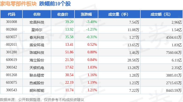 证券之星消息,10月21日家电零部件板块较上一交易日上涨1.8%,东贝集团领涨。当日上证指数报收于3916.33,上涨1.36%。深证成指报收于13077.32,上涨2.06%。家电零部件板块个股涨跌见下表: