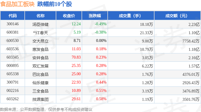 从资金流向上来看,当日食品加工板块主力资金净流出7829.65万元,游资资金净流出2572.76万元,散户资金净流入1.04亿元。食品加工板块个股资金流向见下表: