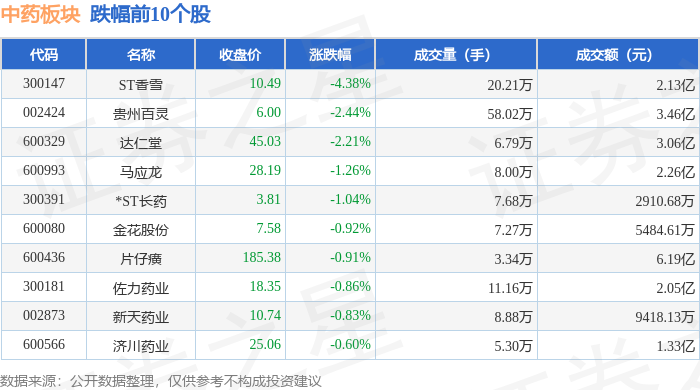 证券之星消息,10月21日中药板块较上一交易日上涨0.19%,特一药业领涨。当日上证指数报收于3916.33,上涨1.36%。深证成指报收于13077.32,上涨2.06%。中药板块个股涨跌见下表: