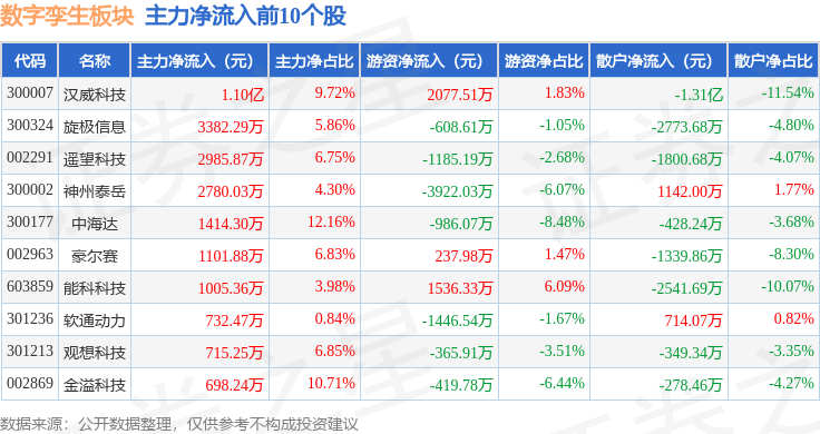 从资金流向上来看,当日数字孪生板块主力资金净流出5707.04万元,游资资金净流出2.34亿元,散户资金净流入2.91亿元。数字孪生板块个股资金流向见下表: